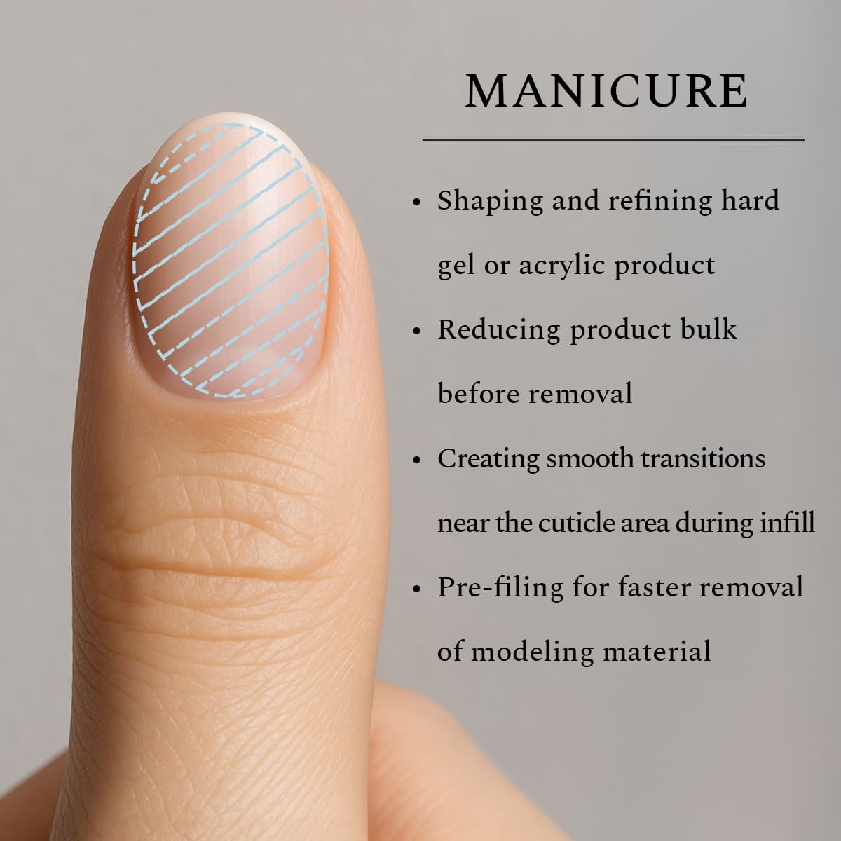 This medium-grit carbide corn bit is designed for confident, efficient removal of artificial materials during manicure and pedicure procedures — offering power without sacrificing control. The 6 mm head provides stable, even performance on both small and large areas, making it ideal for bulk removal and surface refinement.