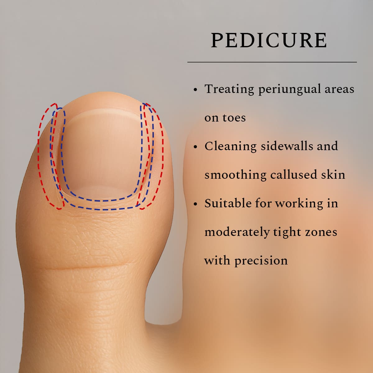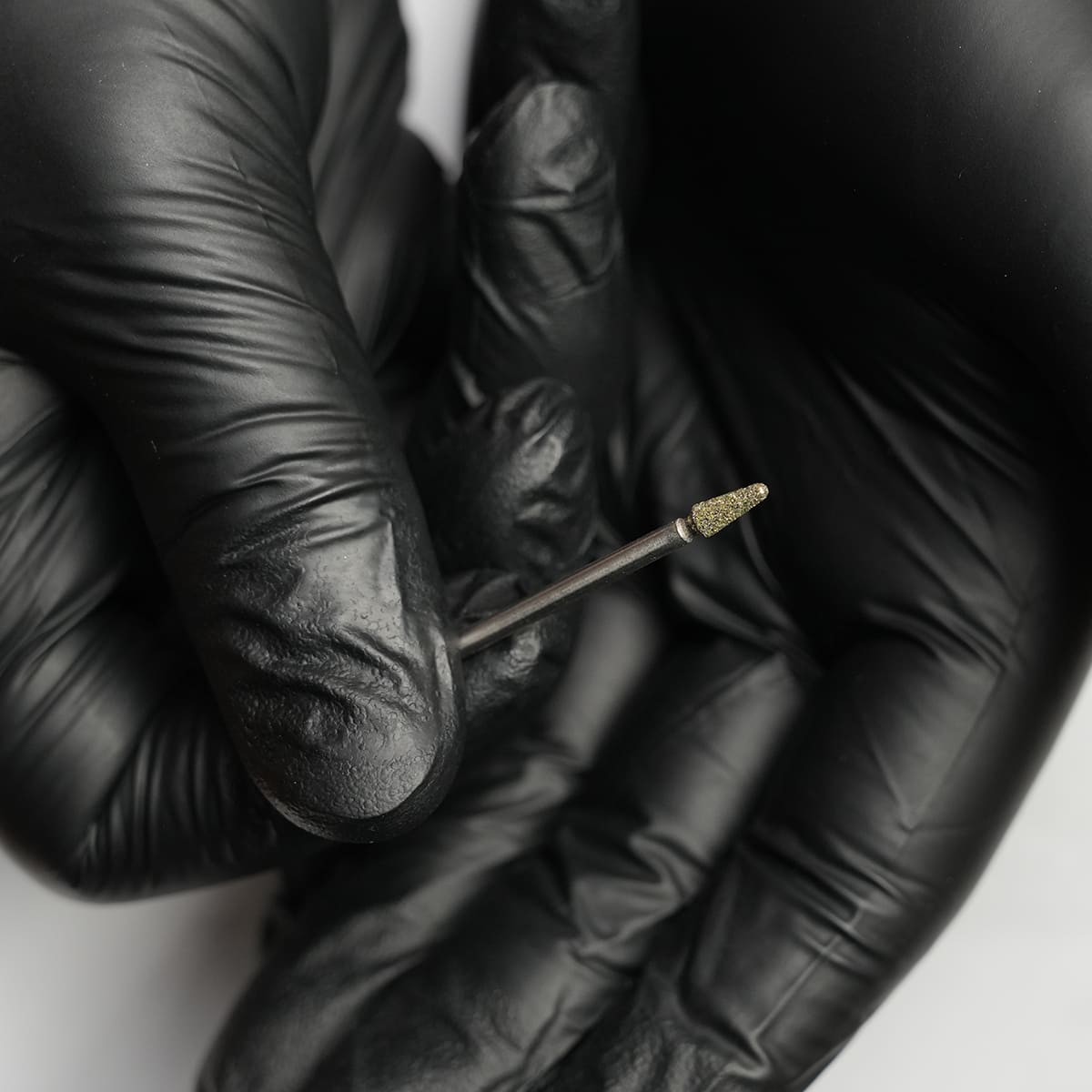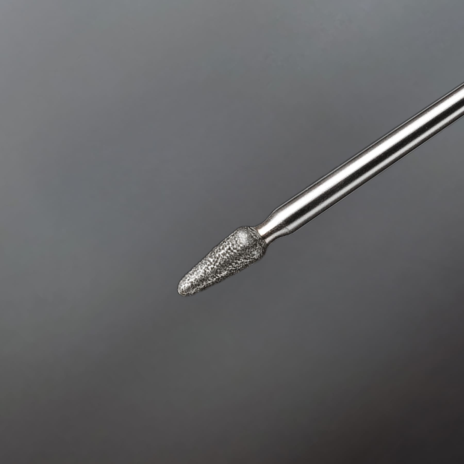 This medium-grit diamond cone bit with a 3 mm tip is a versatile tool for manicure and pedicure procedures, ideal for efficient cuticle cleaning, lateral fold care, and nail plate refinement.