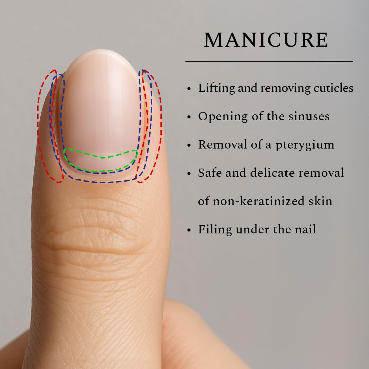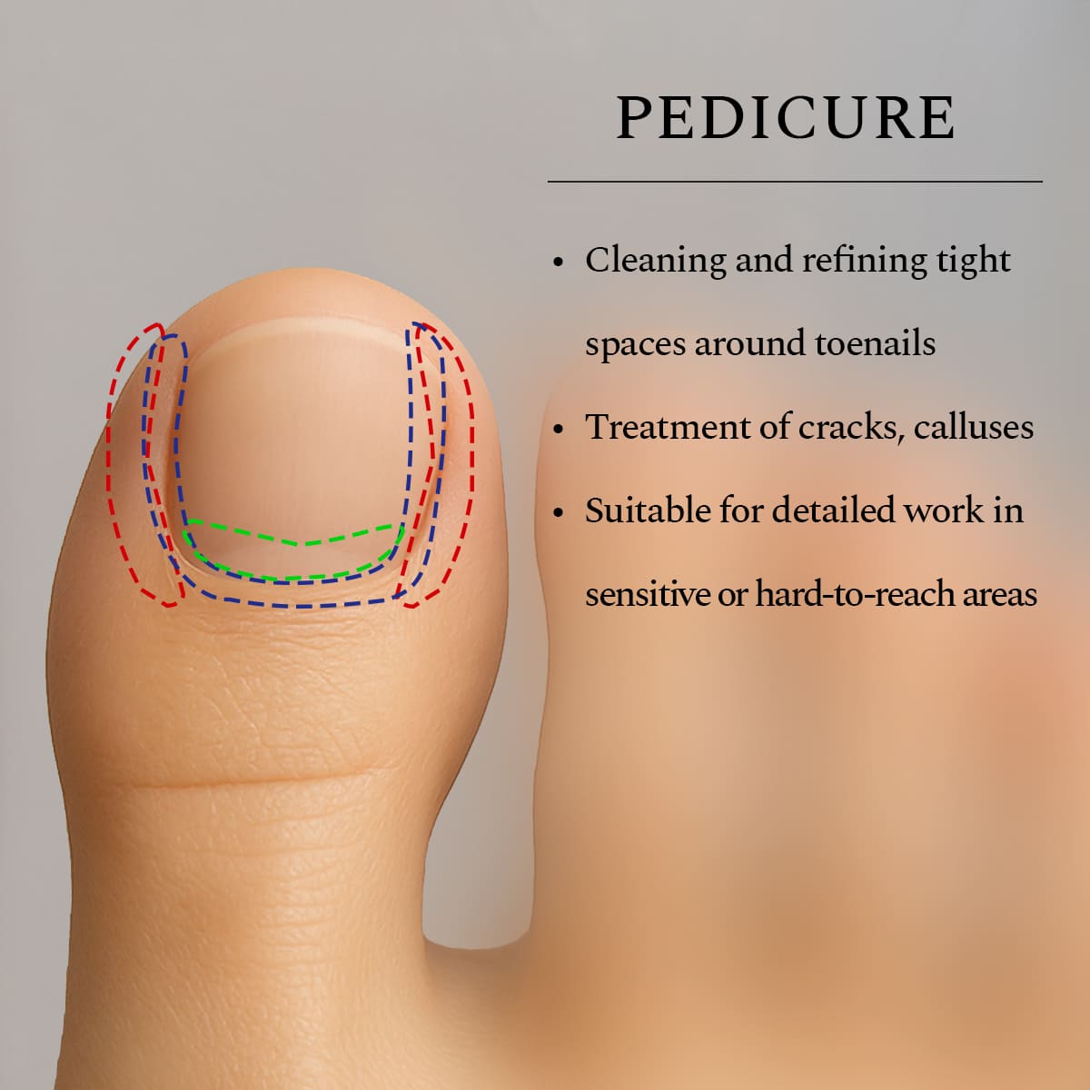 • Drop shape — ideal for lifting, cleaning under the cuticle, and detailing