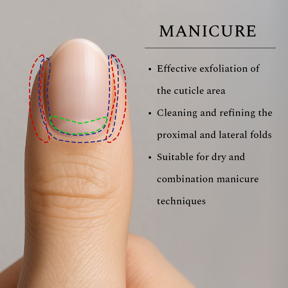 • Cleaning and refining proximal and lateral nail folds
