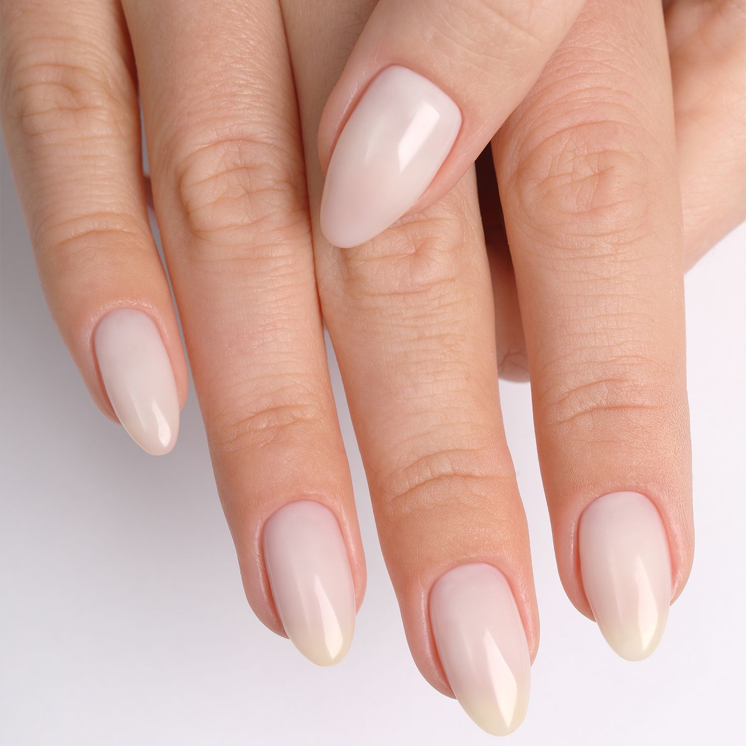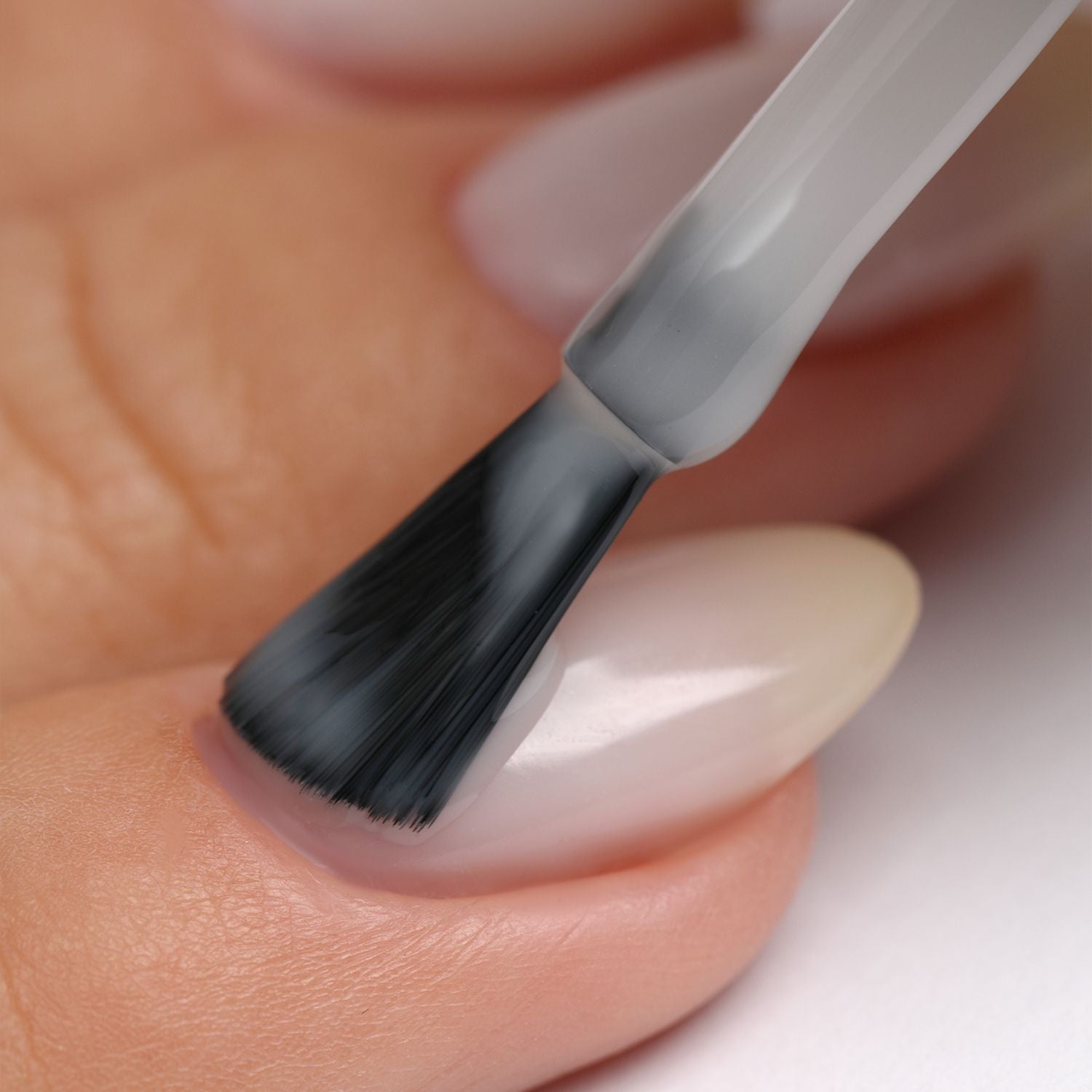 - Apply base. Apply E.MiLac BASE GEL. To strengthen, add a drop in the centre of the nail, invert the finger and spread the gel to form an ideal arch. Cure 30 sec–2 min in an LED/CCFL lamp or 2 min in a UV lamp (follow your lamp's protocol).