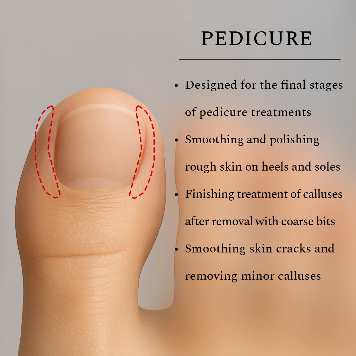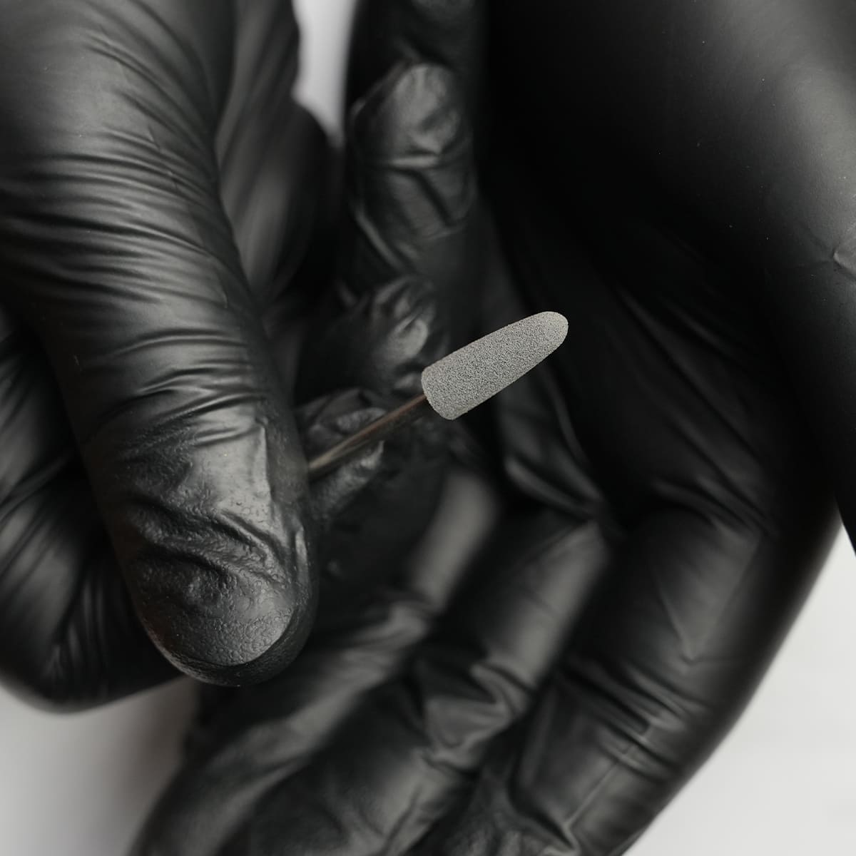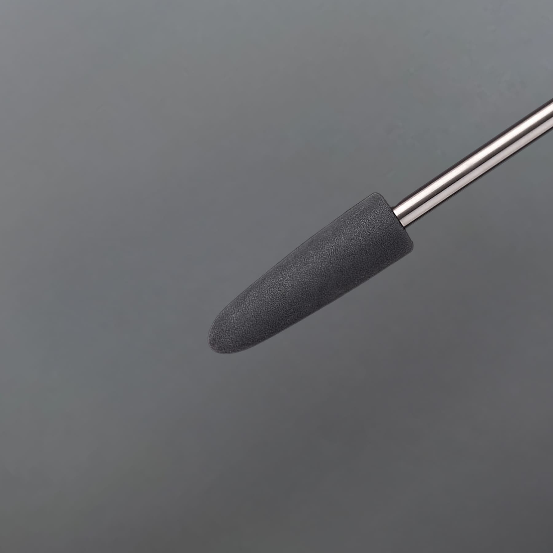 This coarse-grit silicone cone bit is designed for smoothing, polishing, and finishing artificial materials during manicure and pedicure treatments. Its 6 mm tapered shape ensures full surface contact, making it ideal for refining hard coatings without generating excess heat.