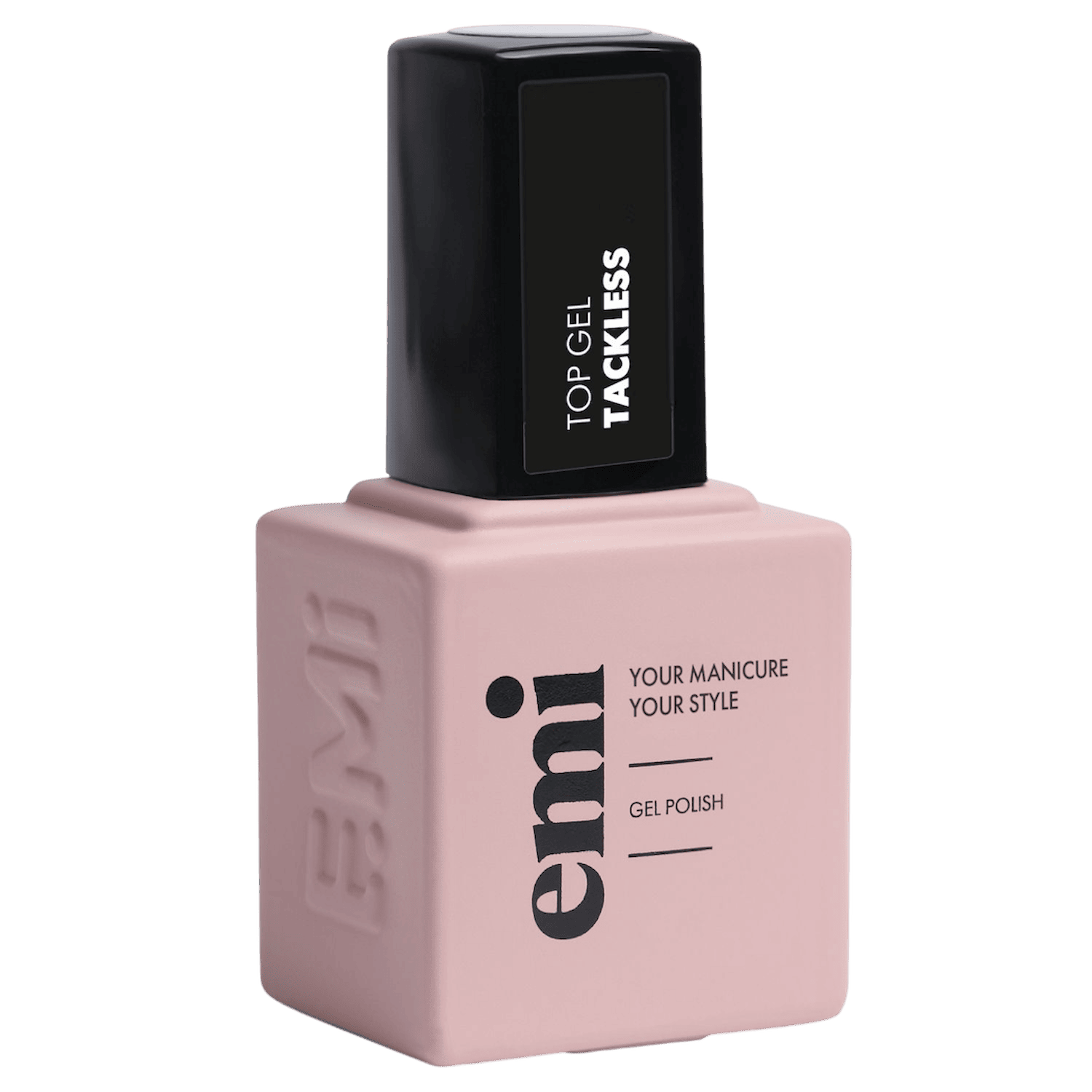 - Apply the Top Gel Tackless on dried gel polish. Work nail by nail — the top should remain slightly tacky/warm while rubbing the pigment.